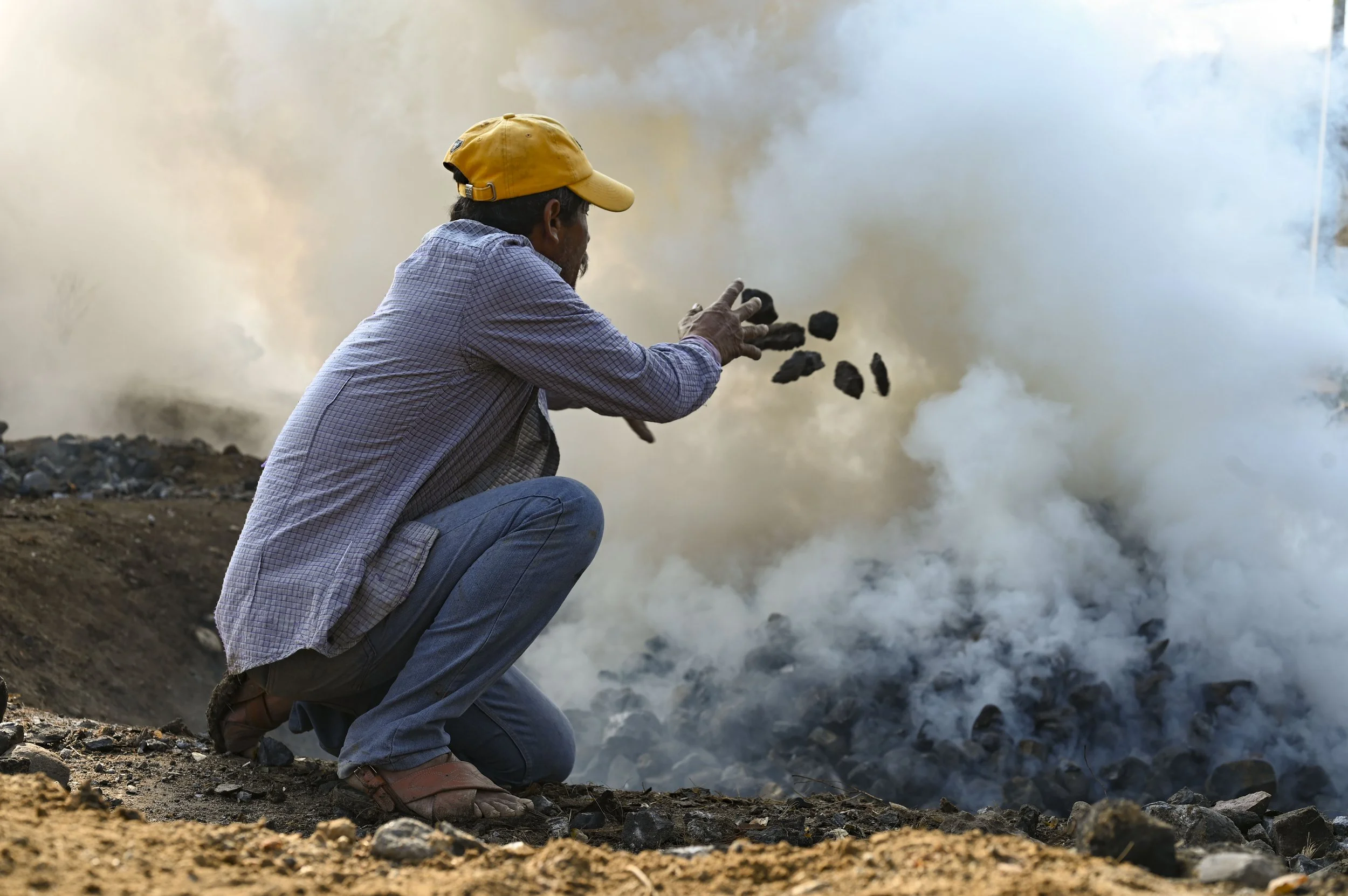 The jimadores chop and gather the agave hearts, preparing them for roasting.